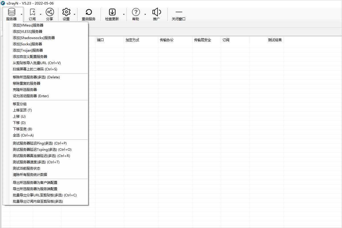 获取节点服务器信息后,就可以开始添加服务器了,点击软件主界面的服务器,根据不同的节点添加不同的节点服务器。